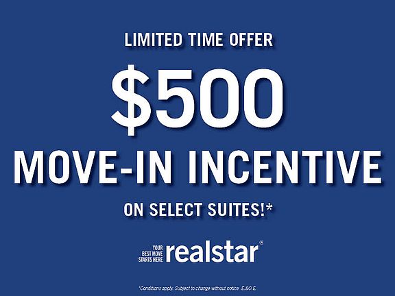 - Special offer! LIMITED TIME OFFER | $500 MOVE-IN INCENTIVE ON SELECT SUITES!* -