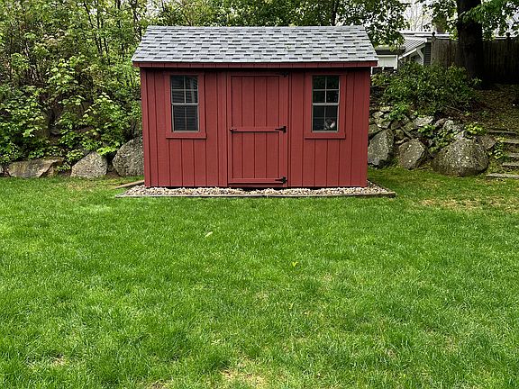 - Exterior features: Heating system: Baseboard, Landscaping included in rent, Lawn, Storage Shed
