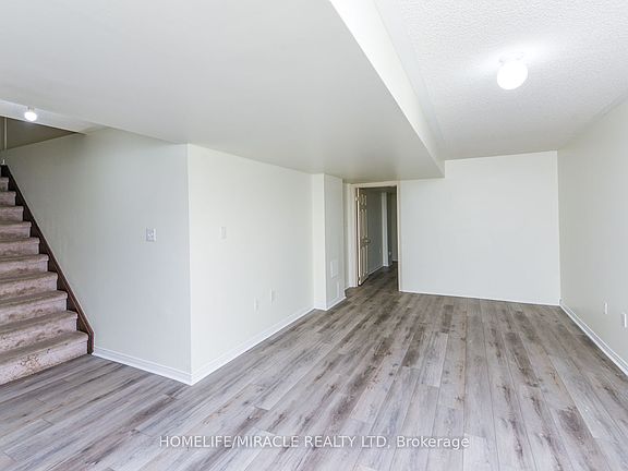 Legal basement with 2 beds, one bath, kitchen etc. Freshly painted. Brand new Vinyl flooring throughout. No Carpet. Completely Independent & private side entrance. Simply walking distance to all School types i.e. Elementary, Middle or High School. Steps away from Mosque, Gurdwara and Trinity Common Mall. Steps away from Soccer center, Bus Stop & Park. 2 Mins drive to HWY 410. You literally can't go wrong with this property whatsoever. One parking spot included in the rent. Tenant pay 30% all utility.