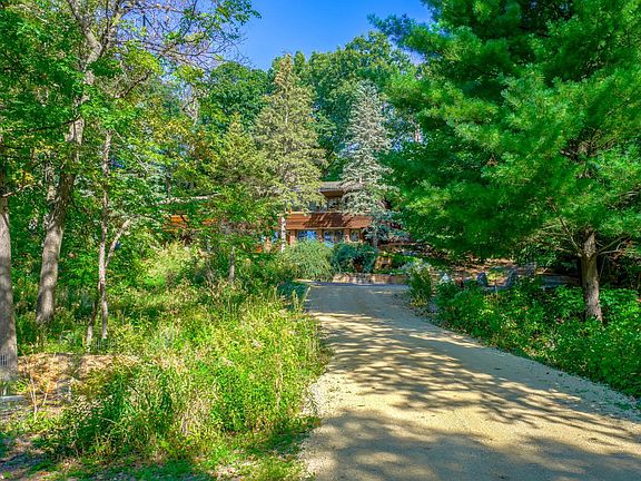 Fall in love the moment you arrive at this secluded retreat, a Michael McGuire designed midcentury masterpiece that harmonizes with its exceptional natural surroundings. Set on a slope among deciduous and evergreen woodlands, this 1.69 acre property overlooks Charley Lake and beyond. A long driveway leads to the home, which features redwood siding and interiors, blending beautifully with the landscape. Expansive windows and abundant natural light enhance the open floor plan, showcasing McGuire’s original design, which has been thoughtfully updated while preserving its midcentury charm. Perched high on its lot, the home provides stunning views year-round, including spectacular sunsets. This home boasts wonderful outdoor spaces with a private deck off the primary suite and a spacious deck off the sunroom and living spaces. The lower level walkout features aggregate floors, custom cabinetry, and perfectly preserved wood finishes. 2+ car garage includes workshop and additional storage space. Meticulous ongoing care along with updates to the home include an updated kitchen, new main level heating & A/C unit, water heater, water softener, and more. Ready to move in and enjoy this fall!