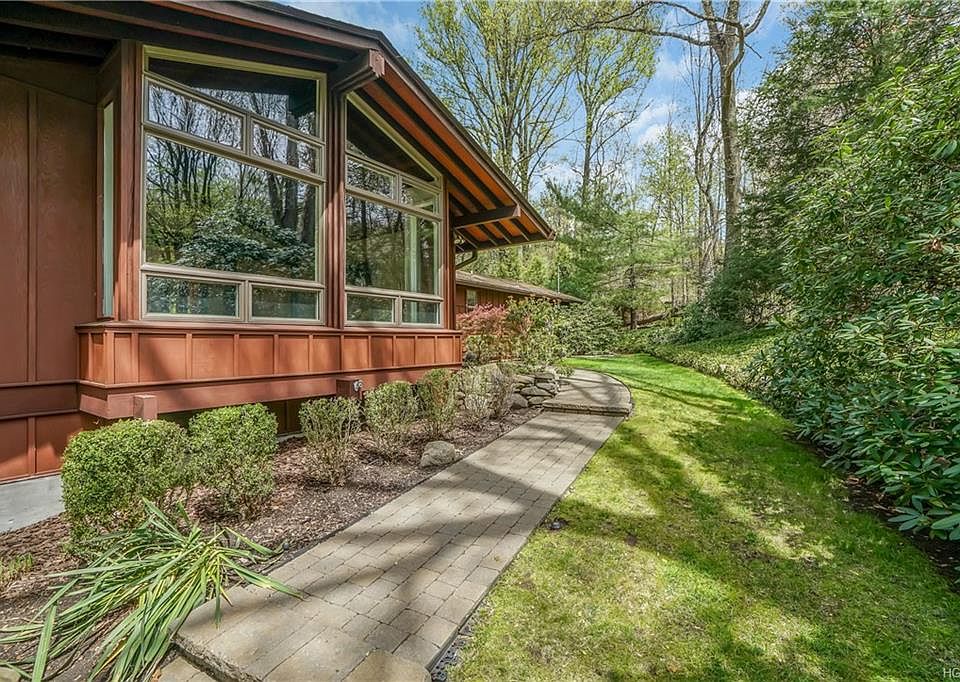 Enchanted grounds surround this beautifully-unique home. This sprawling contemporary ranch has an updated kitchen with stainless appliances overlooking a fireplace nook for cozy dining. Vaulted wooden ceilings are a main feature to the huge living room with midcentury detail. Three huge bedrooms and 2 full bathrooms grace the main floor and the master closets are fitted with Container Store shelving. Hardwood gleams throughout the main level. There is a full finished basement with a large above ground family room that walks out into the driveway and a full bathroom. Additionally, the basement has another room for potential office space, walls of closets and an unfinished workshop area. The property must been seen! Surrounded by nature, the backyard features a tranquil koi pond waterfall, picturesque landscaping, and lush green everywhere you look. Located in the development of Charnwood Forest in the Suffern Central School District. Close to the NYS thruway and express trains to NYC!