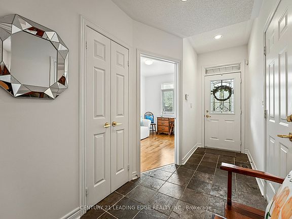 Original Owner of Model Home in Premier Adult Lifestyle Gated community of Swan Lake Village! Sparkling Clean and well maintained 2 bedroom, 2 full washrooms.Spacious 1430 sq.ft, with vaulted ceilings in living, dining areas and hardwood flooring. skylights in living room and kitchen, slate flooring in foyer, Gas Fireplace. Walk out to new deck with private green views, has gas BBQ hookup and electric awning. Primary bdrm has walk in closet, 4 pce. Ensuite with walk in shower. 2nd bdrm at front with double closet makes a great office/den. Beautiful updated eat-in kitchen with white cabinetry, granite countertops and backsplash. Huge basement with R/I washroom, sanitized with new insulation, ready to design to your own preferences. Updated and well maintained furnace. Garage doors approx.5 yrs, and drywalled - inside entry