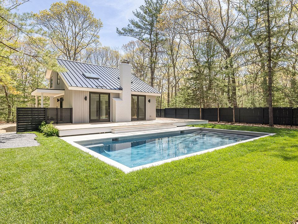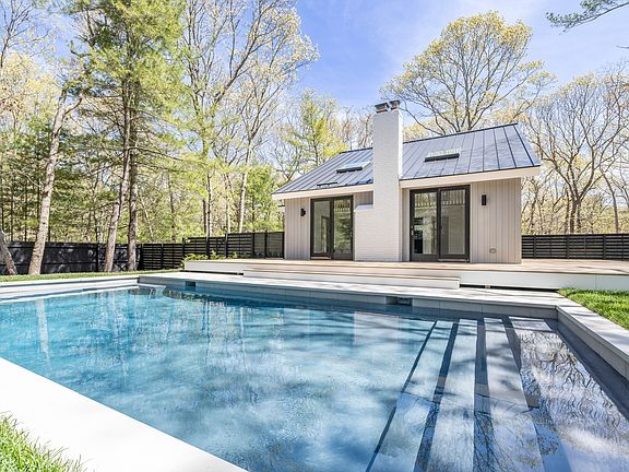 Introducing 3 Malcolm Avenue, a fabulous airy, sunny, and bright, fully renovated 3 bedroom, 2 bath modern gem located on a .40 acre on a tranquil street in the sought-after East Hampton Northwest.cThis cleverly reconstructed saltbox beach house has just undergone a complete gut renovation down to the studs, giving the feeling of a brand-new home. Every aspect has been reimagined with meticulous craftsmanship awarding a completely turn-key opportunity. New elements include siding, roof, skylights, all new appliances and mechanicals, windows and doors, electrical, plumbing, and flooring. The pristine 16 x 30' Gunite pool with stadium steps and blue stone surround and patio is set in a freshly planted and landscaped fenced-in garden. Inside, double-height ceilings, natural oak accents, earth-toned tiled baths, and a stylish, modern, minimalist kitchen embody the essence of beach-chic design. The light-filled main floor has a white brick wood-burning fireplace centered in the living room with west-facing sliders on either side. They open to a sundrenched wraparound deck extending the living space out to the pool, offering plenty of room for loungers, outdoor living, and dining. One bedroom is on the ground floor with two vaulted ceiling bedrooms found upstairs. A cozy overlook under a large window is perfect for an office desk or peaceful reading alcove. The finished lower level is a completely open, flexible space with 2 deep window wells to bring in natural light. It has room for multiple functions, such as a yoga/pilates studio, gym, TV den, and play space for all ages. The home is equipped with a new nest system for heat and central air, central vacuum, efficient on-demand hot water, and irrigation. The brand-new pea-gravel driveway is curbed with Belgian block for a polished finish and has a large parking area for vehicles and all sorts of summer toys. Attention to detail is evident, resulting in a seamless fusion of boutique design and contemporary care-free living only 3 miles from the heart of East Hampton Village and under 5 miles to the ocean at Main Beach. Schedule a private showing today and experience this opportunity for yourself.
