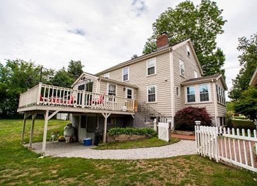 Care & pride has gone into this Vintage home, lovely appeal! A pretty setting, tall trees bordering the perimeters, terraced rear yd. overlooking small brook,Chicken Brook, Medway . A 2 story carriage house garage that can be accessed by two entry ways, one for upper level entry & other 2 bays for lower level. Ideal storage for contractors. Upper level of garage had been used as a finished work area & music rm. Property also has a lge storage barn, zoning AR ll can allow horses. Home is mint cond., hardwd fls, updated kit. w/ SS appliances to stay.Updated baths. Fireplc'd family rm, w/ entry to 3 season sunrm. Living rm & dining rm open fl plan. A/C & Heat by ADP Now.com "B Series" Hydronic Air Handler. Columbia Gas service at street if preferred. Updated windows in most rms. Walk-up attic 22x30.Town water & sewer, you'll be proud to own this unique property. Easy commute to rte 495/MApike, rte 128. Handy to shopping plazas, cinema, restaurants, all nearby!