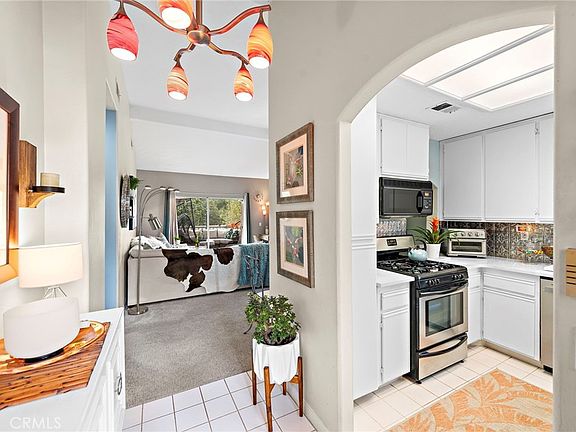 Welcome to this must see beautiful former model upper end unit in highly sought after Provence D’Aliso where units RARELY become available! Tiled entrance and kitchen with newly painted white cabinets and new modern backsplash. New 3 tier stainless-steel Whirlpool dishwasher and new luxurious Calacutta Gold Silestone solid quartz counter tops as well as a stainless steel farm sink with new coiled faucet. Soaring beamed ceiling in the dining, living and great room with a beautiful gas fireplace and ceiling fan. Both bedrooms are main suites on opposites ends of the condo for maximum privacy, front bedroom has a brand new Murphy bed that’s never been used. Both bathrooms have contemporary 12x24" charcoal grey tiles and dual mirrored closet doors with tons of extra storage space. One bedroom with new stylish vanity and 3 door mirrored cabinet. Full size indoor laundry area located in hallway and a newer Nest thermostat. Expansive balcony with hillside views presents a perfect spot for your morning coffee or end of the day beverage to wind down. Located across the gorgeous pool and remodeled jacuzzi and community gym. Located for easy access in and out of the complex. This unit comes with a 1car garage, driveway and a designated parking spot for a total of 3 car parking spaces. Provence D ‘Aliso is located next to Hillview Park with amazing scenic views of the valley with paved walking trails. Close to shopping, hiking, biking, skate park and Aliso Viejo town center which has great restaurants, concerts in the park and a movie theater. Welcome to your beautiful new home!