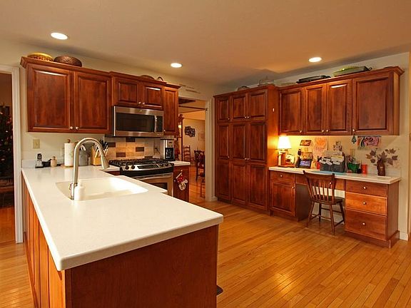Country modern, mostly first floor living with a spacious bonus room upstairs and a 770 s.f. wet bar and home theater in the basement which is done with the Owens Corning basement finishing system. Hardwood floors, vaulted ceilings, lots of natural light, solar PV, natural gas fireplace, gym, pool table, 13' x 55' storage area, 2 car attached garage, 24'x 48' play area outside, 13 outdoor perennial flower gardens, fruit trees, maple trees, ornamental trees, lots of sun. 2 enclosed porches and a spacious backyard deck with an adjacent stone patio and firepit with a stone bench. In a cul-de-sac with great neighbors. Close to amenities but quiet neighborhood. Country living with city convenience.