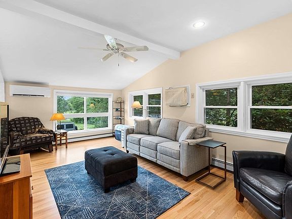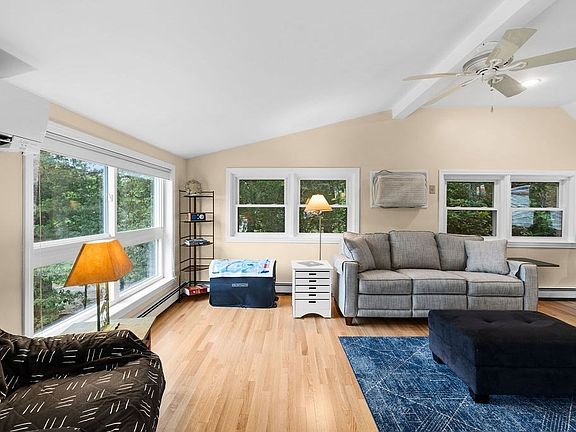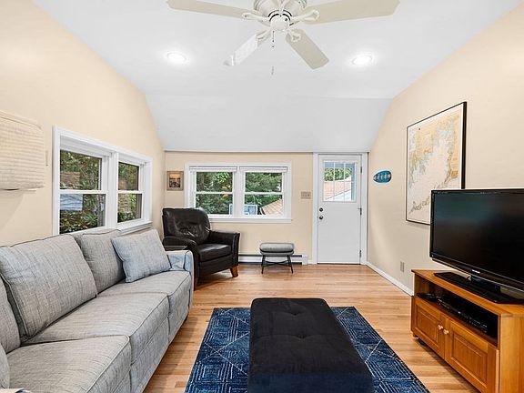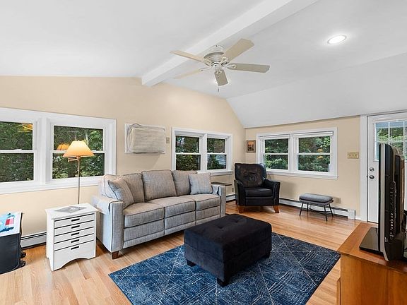This picturesque house is located in the Briarwood Beach neighborhood offering a private beautiful sandy beach and unrestricted boat access to Buzzards Bay. The property is nestled overlooking Beaverdam creek a branch of the Weweantic River. The home offer ample natural lighting with large picture windows, gleaming hardwood floors, modern fully applianced kitchen with quartz counters all within the open floor plan, beautiful bath with custom shower, 2 bedrooms with ample closet space, heated walk out basement with half bath. 2 detached two car garage, shed, maintenance free deck, storage shed and green house. The property has many recent updates including heat system, roof, deck. etc.