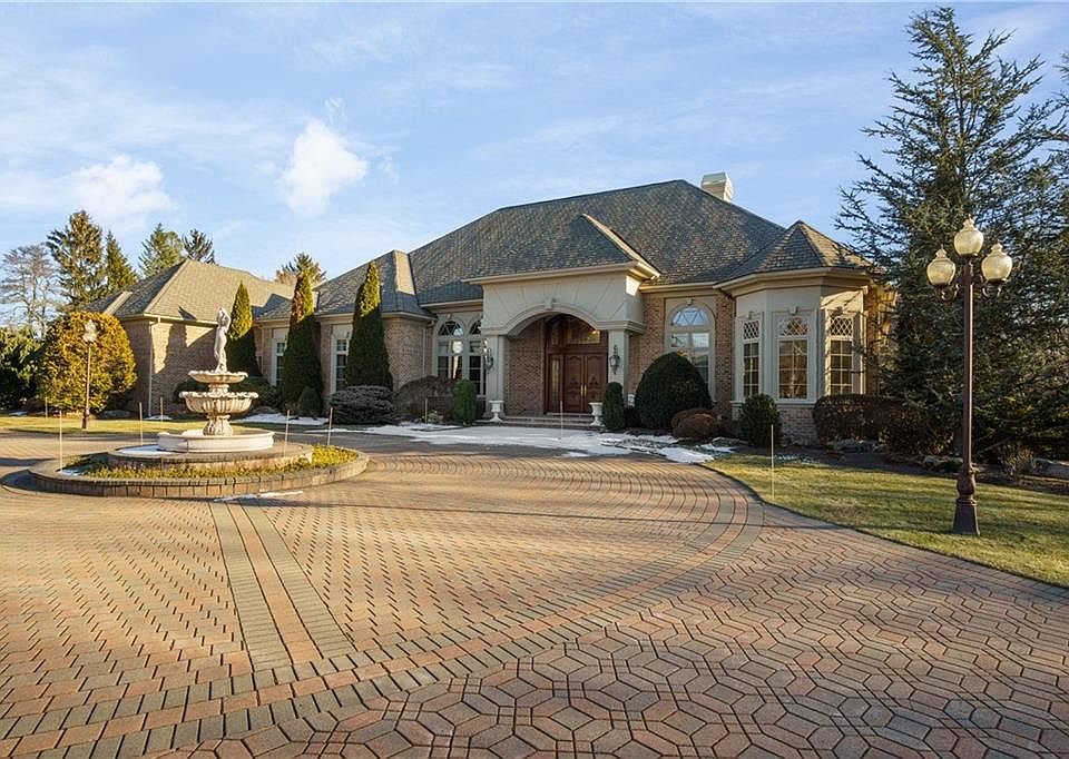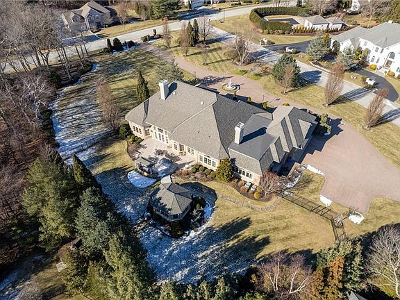 Welcome to coveted Bridlewood where you will find exquisite quality and detail throughout this majestic Mediterranean style custom designed ranch. Behind the double wooden doors is a grand foyer that opens directly to an elegant great room featuring a fireplace with a soaring carved alabaster mantle. Gourmet kitchen includes custom cabinetry, a center island and a large walk-in pantry. The elegant dining room is spacious and beautifully designed with a Butler's kitchen steps away ----great for entertaining. Master en suite offers 2 walk-in closets and 2 additional bedrooms each with their own full bathroom. An office, a family room with wet bar and a den with a fireplace complete the main level. Oversized windows shed sunlight throughout this home. Each room is accented with crown molding and tray or coffered 16-foot ceilings. Most of the hardwood floors are inlaid with mahogany. The lower-level guest suite includes a bedroom with walk-in closet, full bathroom and family room. The granite patio is trimmed in blue stone, includes an outdoor kitchen and overlooks park-like grounds. A heated Gazebo provides additional outdoor living space.