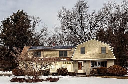 Rarely available, much sought after 4 Bed, 2.5 Bath Hicks Farmhouse Colonial with huge master suite! This home has it all: open concept kitchen/family room with breakfast bar, fireplace, gleaming hardwood floors and beamed ceiling; dining room with chair rail and built in, glass front hutch; living room with bow window; plus a large, sunny, atrium that can be used as a mudroom entry from the 2 car garage. Laundry room and half bath complete this floor. Upstairs are 3 large bedrooms that share a full bath PLUS the spacious master. This true suite begins with a generously sized sitting area with fireplace, closet and built ins leading into a spacious bedroom area with two more closets and full bath. This is a fabulous space to begin and end your days! Enjoy the convenience of central air, natural gas heat/cooking and the cost savings from the recently installed solar panels. Neutral carpet/paint throughout make this the perfect blank slate for your personal touch.