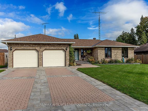 Welcome to this beautifully maintained all-brick bungalow featuring three bedrooms and three bathrooms in the desirable West End of Morrisburg. The double-attached garage offers convenient access directly into the new kitchen with granite counter tops, an abundance of cabinets, extensive counter space, and a huge island perfect for meal prep or casual gatherings. The spacious eat-in area accommodates a large dining table and opens through sliding doors to a private, meticulously kept backyard with a deck and storage shed-ideal for outdoor entertaining. Inside, the generous living room with its inviting fireplace creates a warm and welcoming first impression as you enter through the front door. The main bathroom has been tastefully renovated and complements the three well-sized bedrooms, offering comfort and functionality for the whole family. The basement offers ample height, a full bathroom, and an abundance of space-perfect for a family room, home gym, office, or hobby area. Perfectly situated just steps from Lakeshore Drive and the St. Lawrence River, this home combines modern updates, quality construction, and an unbeatable location. Some of the work completed over the past five years include on demand hot water tank, generator, new shingles, eaves troughs, back shed, irrigation system, landscaping, kitchen, bathrooms and vinyl plank flooring.