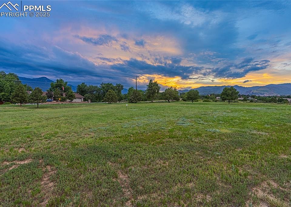 As the southernmost lot of Sunrise Ridge, this buildable lot combines convenience, privacy, and inspiring views. To the west, Pikes Peak and the Front Range provide a stunning backdrop, while to the east, an uninterrupted panorama of Colorado Springs' twinkling lights stretch across the horizon. The property features flat terrain with a few trees, offering excellent flexibility to accommodate a dream home design. Nestled in a peaceful new subdivision alongside established neighborhoods, the lot allows for a residence to be set back from the street while still benefiting from direct access to a paved, city-maintained road. With Garden of the Gods, Red Rock Canyon, and Sondermann Park nearby, outdoor recreation is just minutes away. No HOA or covenants means creative freedom in building plans, and fencing is permitted. Utilities are located at the lot line or in the street; electricity is overhead. Seller will bring water and wastewater taps onto the property, with tap fees the responsibility of the buyer. This lot offers a rare opportunity to create a home that balances natural beauty with city convenience. For those looking for additional space in this spectacular location, the adjacent lot can also be purchased.