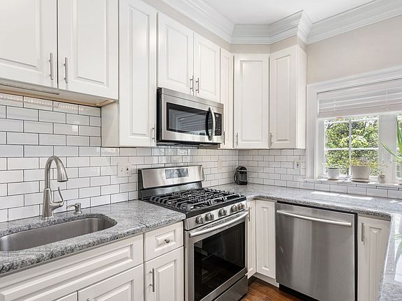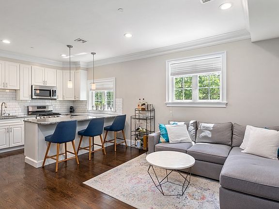 Beautifully bright this 2017 new construction home has open concept living space, perfect for relaxing or entertaining. This gut renovated residence mixes contemporary design with traditional finishes and maximizes every inch of space! Features high ceilings, central A/C, walk-in closet, custom crown moldings, white soft-close cabinets, stainless steel appliances, wrap-around granite with 3-seat peninsula, solid hardwood floors, fully tiled bath, in-unit washer/dryer