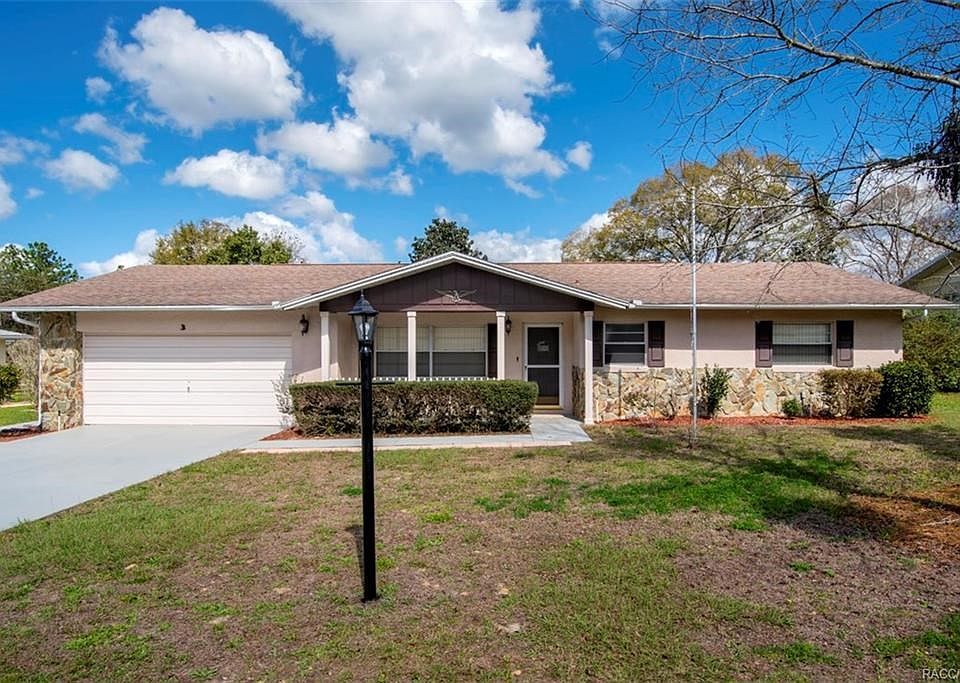 Move-In-Ready Bright Comfortable 2/2/2 Imperial Executive II w/ an inviting front porch & stone accents creating fantastic curb appeal, located in the South section of Beverly Hills. Freshly painted interior and new carpets. Offers formal LR, DR, Family Rm w/ fire place & Florida Rm w/ vinyl windows. Fully equipped eat-in kitchen w/extensive cabinetry for storage, inside laundry, 2 car garage & utility shed. Roof replaced 2008 w/ 30-yr shingles. Central heat/air replaced 2016. Great Home! Great Location! Enjoy!
