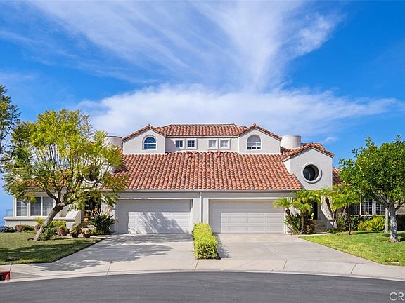 Largest model with panoramic views up the coast, this Laguna Sur corner home is on a small cul de sac perched high on a hill to capture sweeping ocean & sunset views! This 3-bedroom, 3.5-bathroom residence features an open layout with soaring cathedral ceilings, and a living room balcony offering incredible views. The home showcases beautiful new vinyl flooring, some fresh paint and previously renovated bathrooms and kitchen. The main living area is expansive and has a large dining room adjacent to it. The home also boasts a front family room just off the kitchen and nook. The spiral staircase upstairs leads up a large primary bedroom with a sitting room perfect for an office or gym and boasts huge coastline, hills, and sunset views. Large walk in closet and spacious primary complete the upstairs. Down the second set of stairs, is the lower floor with two bedroom suites each with the own bathrooms plus a large game room and bar which is a great spot for entertaining as well. The Laguna Sur community is guard gated & offers resort-style amenities, including swimming pools, tennis courts, spas, and scenic walking trails overlooking the Laguna Beach coastline. Ideally situated, it is just minutes from The Waldorf Astoria Monarch Beach, The Ritz-Carlton Laguna Niguel, Monarch Beach Golf Links, and El Niguel Country Club. An incredible opportunity to own a home with breathtaking ocean views and a versatile floorplan.