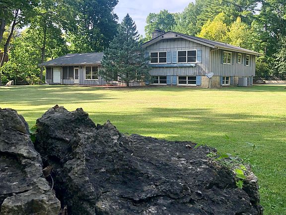 Though located in a prime location, you'll feel a world away from everything as you step onto this two-acre property nestled in an established, quiet, highly desirable neighborhood in Bloomington. Situated at the end of a tree-lined boulevard and mere minutes from shopping, dining, parks, and much more, this property provides the discerning buyer convenient access to Bloomington-Normal's amenities. Meandering through a professionally designed landscape of boulders and mature trees, the 1000-foot stamped, color concrete walking/garden path lines the perimeter of the property. With six entrances from the greater yard, as well as four seating vignettes throughout, this pathway provides the perfect opportunity for taking in the beauty of the property's park-like setting while relaxing in your own private sanctuary. The five bedroom, two and a half bath home is original to the property. Built in 1963 as a birthday gift for the previous owner's wife, this authentic Mid-century Modern split-level home features two fireplaces (one on the main level and a second in the lower level), an attached two-car garage, a spacious main level to accommodate an eat-in kitchen with an adjacent dining room, a powder room, an inviting entry foyer, and a living room with a fireplace flanked by built-ins. The upper level (6 steps up) features a roomy master bedroom with an attached master bath, three additional bedrooms, and a full bath. The lower level (6 steps down) houses a great room, a utility room, and an additional bedroom. Upon stepping inside, you'll appreciate the many unique features and elements highlighted in this Mid-century Modern era gem: original cabinets and countertops throughout, geometric lines, original bathroom tile and fixtures, and expansive panes of glass allowing light to flood the home. Reminiscent of a bygone era, this quality-built home allows the homeowner to experience true integration with nature and embrace the beautiful surroundings. The carriage house, built in 2013 by Charlie Knapp Builders, is beautiful and impeccable in both form and function. Every detail/feature included within the carriage house exudes quality (Loewen windows, Carlisle Wide Plank Floors, copper gutters & downspouts, slate roofing, custom-made corbels, stone shipped in from Montana, custom-made bronze light fixtures, custom made doors, and more). With a full bath and walk-in tiled shower and the kitchen roughed in, the upper level is perfect for entertaining, hosting gatherings, or for any other number of uses. This architectural marvel is waiting to be enjoyed! Cultivated over time, this unique two-acre property provides a veil of seclusion and natural wonder. The owners have invested a lot of thought, sweat equity, and resources into this amazing property. Be the economic beneficiary of this labor of love and enjoy the exclusivity of owning one of the unique properties on Moore Road! A rare offering indeed! NEED HELP WITH FINANCING OR HAVE A HOUSE FOR SALE? CALL LILIANA FOR DETAILS, SELLERS' OFFER ON FINANCING AT 2% LESS THAN CURRENT INTEREST RATE AND POSSIBLE OTHER AVAILABLE OPTIONS.
