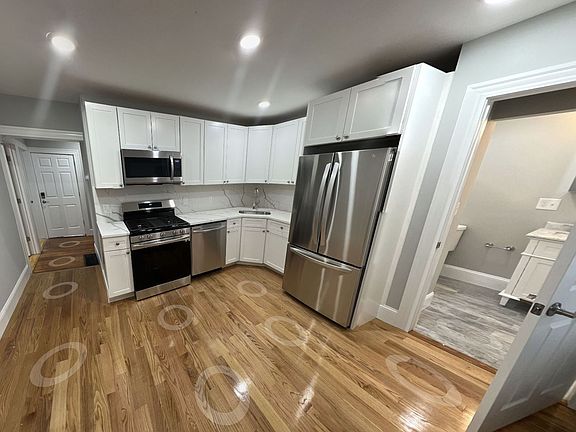 3 bed/2 bath (first floor) Updated eat-in-kitchen New white-granite counters New cabinets New stainless-steel appliances Hardwood floors Modern/tiled bathrooms Coin-op laundry in basement