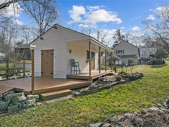 Highest and Best Due in Monday Feb 12th at 9:00 am. Don't miss out on this charming 1 bedroom 1 bath home! When you step inside you find an open living room with newer pergo flooring, an updated spacious full bathroom leading to the bedroom. In the lower walk out level you will have the kitchen, dining area, utility room and a den. Lots of natural woodwork throughout and a wood stove that keeps the home nice and toasty. The property consist of two spacious out buildings. One of the outbuildings overlooks the small pond and has plenty of decking for outdoor living space potential. The inside is currently being used as a woodworking shop. The second outbuilding could be used as a garage with a separate finished space in the rear. You also have a new septic system! Above square footage is 560, below square footage is 448, totaling 1008 square footage of living space.