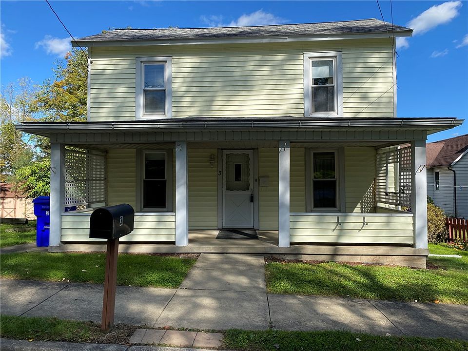 Short distance to downtown on a lightly traveled street, this 2 story home offers the ability to live on the first floor if needed. Primary BR & full bath w/large closet, additionally laundry located on main level for easy access. Pretty blue kitchen cabinets w/appliance package provided along with plentiful counter space & pantry. Large front porch, as well as rear patio picnic spot is perfect for morning coffee or summertime meals.