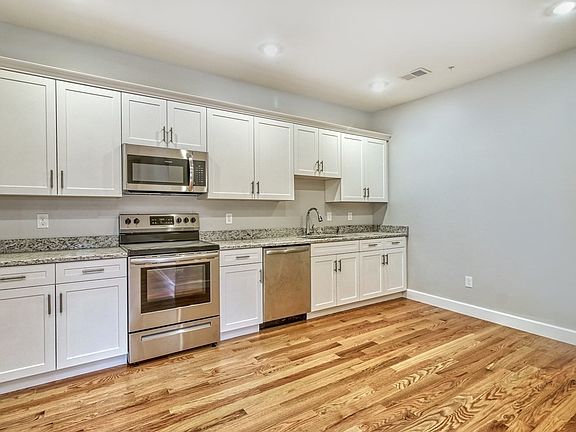 Sunny renovated 2 bed/ 2 bath with recessed lighting and hardwood floors. Large open floor plan with stainless steel appliances and granite countertops. Master bedroom with ensuite bath and walk-in closet. Guest room with double closets and ample space. Central A/C, in-unit laundry room and additional storage closets. 1 parking spot included and additional spaces available. Conveniently located near the Malden Centre Station, a variety of shops and restaurants. Rental application, verification of income and credit check required to apply. First month, last month and broker fee required by lease signing. Sorry no pets. Available for September 1st move-in.