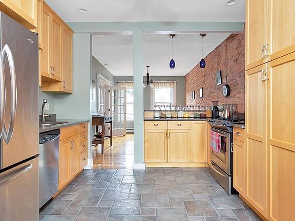 Fabulous Brookline Village location, convenient to Longwood Medical Area. This brick rowhouse condominium, with three bedrooms, abundant natural light, high ceilings, and maple floors offers a wonderful layout. Features include a spacious living room with built-in bookshelves, French doors opening to the dining area and kitchen with exposed brick. The updated kitchen is appointed with Caesarstone countertops, breakfast bar, handsome wood cabinetry, and stainless steel appliances. A large private deck, in-unit laundry, and basement storage further enhance this unit. There is an assigned parking space position at the rear of the building. Association updates include 2018 water heater, rear decking and 2019 roof. Easy access to the MBTA D&E Lines, Fenway, and Downtown Boston. Enjoy nearby recreation such as Emerald Necklace, parks, and playgrounds. On the street with historic Dutch Chocolate House.