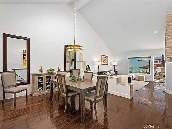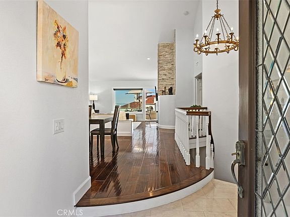 Perched high above the coastline in the exclusive guard-gated community of Laguna Sur, this beautifully remodeled two-story residence showcases sweeping Pacific Ocean and Catalina Island views. Thoughtfully updated with refined finishes and an open, airy layout, the home blends modern elegance with inviting coastal warmth. A gated courtyard with a fire feature sets the tone for relaxed outdoor living. Inside, the upper level features a bright great room with a stone-accented fireplace, custom built-ins, and expansive glass doors that open to a spacious view balcony ideal for sunset dining or morning coffee. The adjacent dining area flows effortlessly into the remodeled kitchen, which offers white cabinetry, designer hardware, under-cabinet lighting, stainless steel appliances, and a charming breakfast nook with stunning coastal outlooks. A generous guest suite is located on the main level, complete with a luxurious full bath offering dual sinks, a soaking tub, walk-in shower, and dedicated vanity area. An additional powder room serves the upper floor. The lower level is anchored by the serene primary suite, which features dual walk-in closets, an electric fireplace, and a spa-inspired bathroom with an oversized walk-in shower. A second living area on this floor provides wonderful flexibility for entertaining or relaxation and includes its own fireplace, wet bar, and wine refrigerator. Glass doors lead to a private patio where ocean views continue to impress. Design upgrades throughout include raised ceilings, Italian porcelain and hardwood flooring, glass railings, Low-E windows and doors, and an updated furnace and duct system for year-round comfort. Both levels feature wet bars with wine refrigerators, making hosting effortless. The exterior spaces are low-maintenance with pavers, solar lighting, and modern irrigation. Laguna Sur offers 24-hour guard-gated security, two resort-style pools, spas, tennis and pickleball courts, and access to scenic nature trails. Just minutes from beaches, hiking, golf, and world-class dining, this home offers an elevated coastal lifestyle in one of Laguna Niguel’s most desirable enclaves.