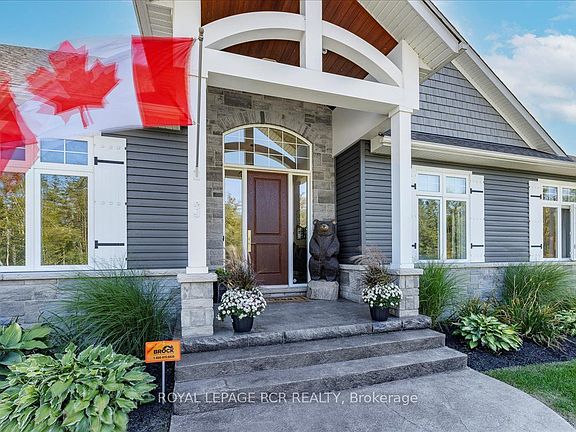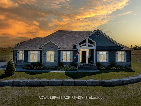 Stunning custom-built bungalow, nestled in an exclusive enclave of estate homes with shared waterfront and dock access on beautiful Sturgeon Lake. Formerly the builders model, this residence showcases over $280,000 in upgrades and combines timeless elegance with modern convenience.A vaulted foyer introduces soaring 9 ceilings, pot lights, and rich hardwood flooring that flows seamlessly throughout the main level. At the heart of the home, a chef-inspired kitchen offers a quartz island, custom cabinetry, and stainless steel appliances. The dining room, perfectly placed beside the kitchen, opens through oversized sliding doors to a covered patio overlooking the backyard retreat. Anchored by a sleek linear fireplace with a Dekton surround and custom built-ins, the great room is an inviting space for both relaxation and entertaining.The private primary suite features a custom walk-in closet and spa-style ensuite with a floating tub, oversized glass shower, and double quartz vanity. Two additional bedrooms and a full bath offer comfort for family or guests, while the main floor laundry with garage access enhances everyday convenience. The 3-car garage includes an extra-deep bay, fully finished with flooring, storage, and workbench - ideal for a gym, workshop, or recreational storage.The lower level features 9 ceilings and oversized windows, rough-in 3 piece and and includes another 2,100 sq. ft. of potential finished space to suit your lifestyle. Outdoors, this half-acre property is designed for both relaxation and entertaining. Over $150,000 has been invested in professional landscaping and hardscaping, including a sparkling saltwater pool with wrought iron fencing. Enjoy alfresco dining beneath the covered patio or host summer soirées in your own private resort-like setting. Ideally located just minutes to Fenelon Falls and Bobcaygeon, and 30 minutes to Lindsay or Peterborough, this beautiful home delivers the perfect blend of luxury, convenience.