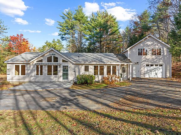 Welcome to 3 Nonesuch Road where you'll find this charming ranch offering easy one-floor living with a garage and separate living space above. This sunlit floor plan features the kitchen open to the dining area and front living room with cathedral ceilings. The primary bedroom includes a walk-in closet, private bath with a soaking tub and a separate shower. A den/office, second bedroom, full common bathroom and first floor laundry complete the first floorplan. The heated garage and storage are accessed through a front to back breezeway. From stairs within the garage, you access additional living space above including a bonus room, full bathroom and bedroom. The front deck is a perfect spot to take in the morning sun or spend evenings relaxing on the back patio. This 2-acre parcel is tucked away on a quiet dead-end road. It's well equipped with an on-demand propane generator and new heating system. This unique property has much to offer, come see it today! Septic designed for 2-bedrooms/4-occupants.
