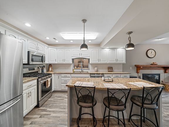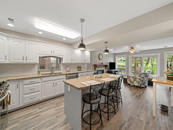 A small portion of the northeast corner is located in the 100 yr floodplain, however the home sits up on the hill and is not in a floodplain and does not require flood insurance. Stunning Custom 2-Story Home on a Wooded In-Town Lot with a Creek~ Tucked away on a beautifully wooded 0.53-acre lot, this completely updated custom two-story home with a walk-out basement offers the perfect blend of nature, privacy, and modern living. A peaceful creek winds through the property, creating a serene outdoor setting right in your own backyard. Inside, enjoy new laminate flooring, stylish new blinds, ceiling fans, and light fixtures throughout. The driveway leads you to the 2 car garage that is conveniently located on the lower level with the kitchen and family room making it extremely nice to carry in groceries, host parties and family gatherings. The home features both a cozy fireplace on the lower level along with radiant heated floors. The spacious living room on the main floor has a wood stove making it feel very cozy. The large 28x28 garage has plenty of storage! The spacious master suite features a custom shower with a multifunctional shower head, a luxurious soaker tub, dual sinks, and a dedicated makeup vanity. Additional highlights include a whole-house vacuum system~Furnace/AC 2024~tankless water heater 2023 and many other custom finishes throughout. The exterior of this home is Low maintenance StuccoFlex, with its Flexibility it stretches without cracking and is extremely durable and water resistant! With its private natural setting, in-town location, and top-to-bottom updates, this home is truly one of a kind.