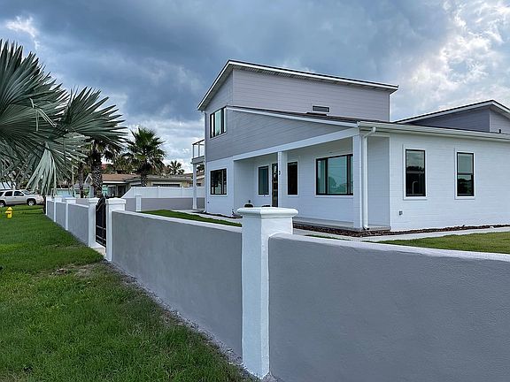 Amazing corner lot home location with ocean view and breezes! This cottage style concrete home is open, airy and spacious. Den/Office can easily be converted to a 3rd bedroom. Brand new metal roof. This gated retreat is surrounded by a decorative concrete wall with multiple outside living spaces and gardens. Convenient to all St. Augustine area shopping and services.
