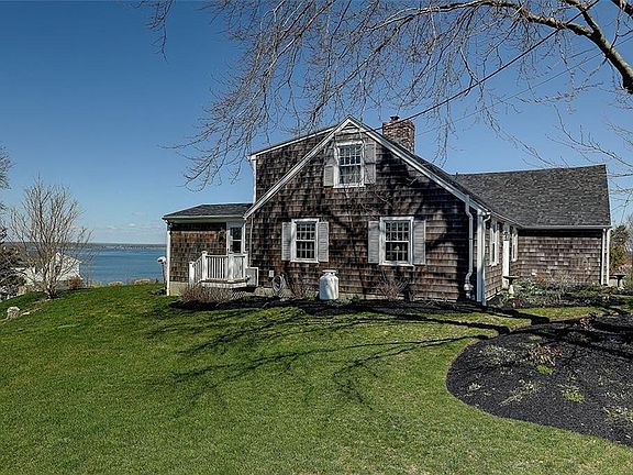 Spectacular westerly water views overlooking Mt. Hope Bay from this charming quintessential Nantucket-style Cape. Fabulous elevated water views and stunning sunsets from most rooms. Enjoy the beautifully landscaped yard with water feature, raised planting beds and a charming garden shed/studio. The home has many updates including central air, Woodmode kitchen, stainless appliances, first-floor laundry/mudroom, beautiful baths, red cedar siding, and a newer architectural roof. The sun-filled family room enjoys access to a large Trek deck overlooking the water. A thoughtful and very functional addition over the oversized two-car garage makes a perfect family room, 3rd bedroom or private office. The basement is dry with ample storage space and a large soapstone utility sink. Easy highway access and close proximity to Providence, Newport, and the beaches. A seaside gem!