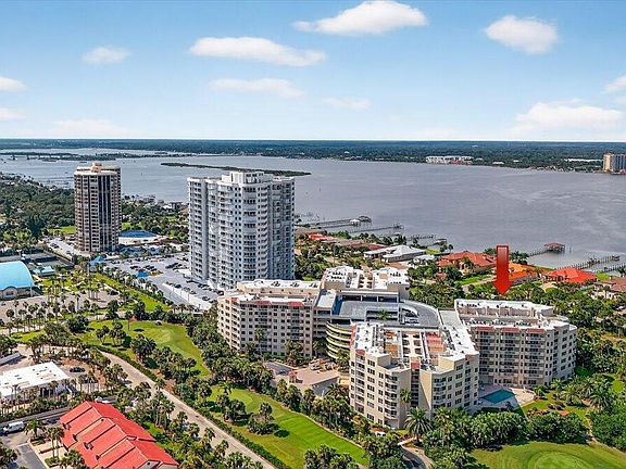 Welcome to one of the most sought-after floor plans in the building, spacious, unique, and rarely available. This oversized condo offers more than just a place to live; it delivers a lifestyle steps from the Atlantic Ocean, surrounded by convenience, recreation, and year-round beauty. This 3-bedroom, 3-bath residence spans the largest single-level floor plan in the community without the hassle of stairs. Only a handful of these units were ever built, making it a true gem. Inside, a well-designed layout includes two expansive primary-sized bedrooms, each with its own ensuite, plus a third guest suite, a formal dining room, and a flexible den/office that could easily serve as a 4th bedroom. Two private balconies provide plenty of space to unwind while taking in sweeping river views. Upgrades include easy-care tile flooring throughout, stainless steel appliances, and the convenience of in-unit laundry. Covered parking and the rare ability to drive up and park on your floor add everyday.. ease. The community amenities are equally impressive: enjoy both indoor and outdoor pools, a fitness center, sauna, study room, and direct access to the golf course. Just outside your door, you can walk to the grocery store, drug store, bank, community center, tennis and pickleball courts, the dog park, restaurants, or the beach itself. Even the city bus stop is nearby making this an easy place to call home. Whether as a full-time residence or seasonal retreat, this condo offers a one-of-a-kind opportunity to enjoy the best of Daytona Beach Shores with unmatched space, comfort, and convenience.