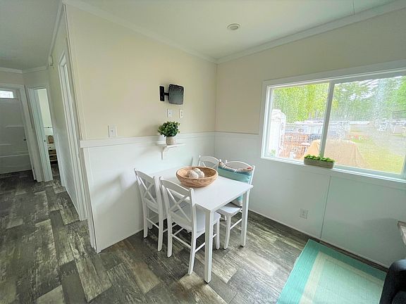 Two bedroom park models are HERE! This custom Shore Park by Skyline model includes a queen bed in the main bedroom & a full/twin bunk combination for the second bedroom! Enjoy your propane fireplace right from your covered porch television hookups available above the fireplace! Finished drywall, shiplap and AC/Heat pump systems are just the start of the included upgrades of this beautiful park model! Your site will be finished off with a 6 x 6 deck and entry stairs to match your composite covered deck, stone paver & wood-burning fireplace combination, 6 x 8 shed, plenty of parking and professionally installed sod.