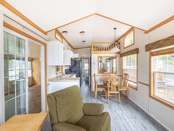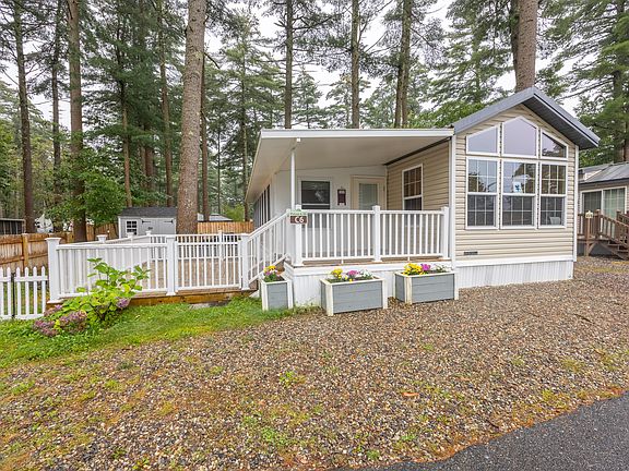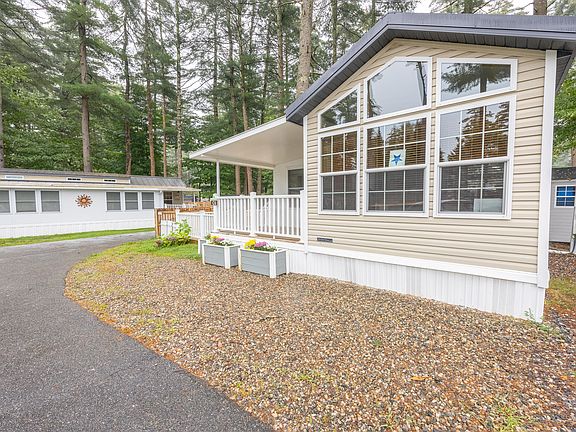 Here's your chance to own a great seasonal vacation home at Old Orchard Beach, close to town and a short drive to the beach. Located at Sun Retreats, this 2-bedroom, 1-bathroom manufactured home has plenty of space to enjoy and entertain both inside and outside. Once inside you are greeted by a spacious enclosed sunroom that leads to a second bedroom and main living area. Inside the main living area, you will find cathedral ceilings, with an upper loft area. The living room has an electric fireplace with mantel and eat-in kitchen. Down the hall leads to the main bedroom and full bathroom. Outside there is a covered porch and large deck overlooking the fenced in yard with a firepit. Enjoy the amenities at Sun Retreats such as the swimming pools, playground, basketball and volleyball courts, go-kart rentals, and planned activities. Pets are permitted with restrictions. Interior furnishings convey with sale. Shed is owned by Park.