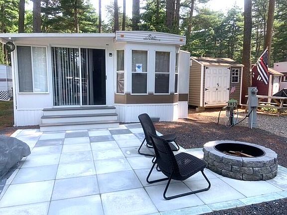 Come discover the joys of Sun Retreats Resort. 7 mile-long Old Orchard Beach on the Atlantic and all the many attractions & amentities of the area. Drive up to your Inviting Beckenridge with 2 designated parking spaces, large firepit, commercial outdoor tiles & trek stairs. Your home-away-from-home sleeps 8-10 and features a 10x26 glass sunroom with a dining area and lots of lounging and sleeping space, 2 large bright , sun-filled bedrooms, another smaller sleeping area, fully applianced kitchen, a 2nd eat-in dining area, a full bath with shower, and an office nook. Enjoy the 10x12 rear patio with commercial tiles, deck, patio canopy and a 6x9 storage shed. The property conveys fully furnished including: newer window blinds, sectional sleeper couch, bed, mattressses, kitchen equipment & utensils. All at a surprisngly affordable price. Unit is in Excellent Condition. Something for Everyone--of All Ages. Just Bring Your Clothes and Enjoy!
