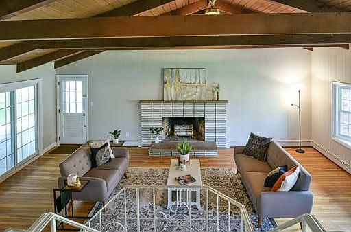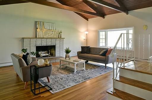 What an incredible house. Multi level home with Mid-Century Modern flair offering versatile space in a desirable Centerville neighborhood. 3 levels of space with 3 generous bedrooms, 2.baths, and garage. The first level offers an open kitchen/dining/formal living space with fireplace, half bath and laundry. Also on this level is a bonus room out back ready for your ideas with large windows, great light, high ceilings and its own heating zone. The second floor is all Family room with an exposed beam vaulted ceiling, hardwood floors and a beautiful fireplace. The 3rd level is composed of the 3 bedrooms, 2 full baths, and hardwood floors. Some of the features include a corner lot, large yard, 1 car garage and car port/covered patio space, replacement vinyl windows,