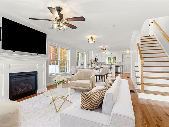 Olde Glory Way is a superb over 55 ten townhouse complex on a cul de sac in lovely Merrimac, Massachusetts. This fantastic 5/2/2.5 townhouse is the first resale since being built in 2020. Lovely hardwood floors throughout, gas fireplace in living room as well as gas cooking and heat. The first floor master bedroom suite has a large walk in closet and walk in shower. A conveniently located laundry is also on the first floor. Upstairs find a guest bedroom and all purpose room that could be a home office, den or even accommodate a guest.
