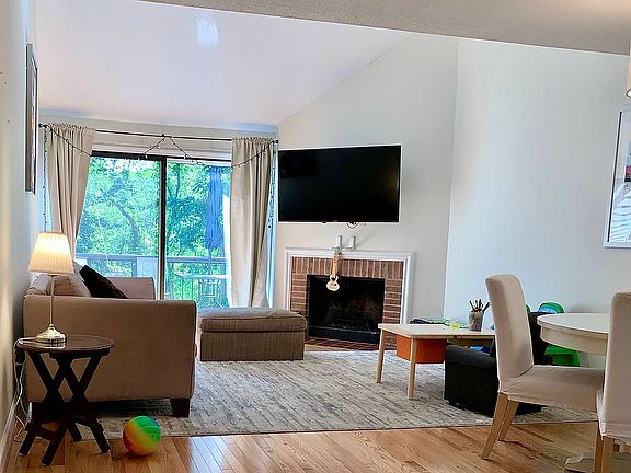 A must see condo with lots of privacy. The living/dining area has a vaulted ceiling, new prefinished hardwood floors and a wood burning fireplace leading to a new TREX deck with beautiful wooded views. The renovated eat-in kitchen has new flooring, granite counters, new shaker cabinets, new sink, disposal, fixtures and appliances. 1st floor also features a spacious bedroom with plenty of closet space, vanity area and tastefully renovated bathroom with heated floor. 2nd floor has a large bedroom with skylight, private bath and a finished walk-in attic storage room. Walkout basement is a fantastic bonus with 700+sf of finished livable area, great for entertaining, plenty of storage, laundry and walkout to patio. New furnace, hot water heater, Nest energy efficient thermostat and 2 reserved parking spaces plus plenty of visitor parking add to the ideal location and modern updates of this move in ready home. Family, single and roomate friendly layout. New roof, driveway, Trex deck and beautifully manicured landscape are a few of the many community upgrades already done. Truly care-free living at its best. Call for a showing. *updated photos pending.
