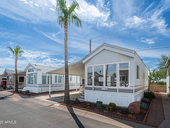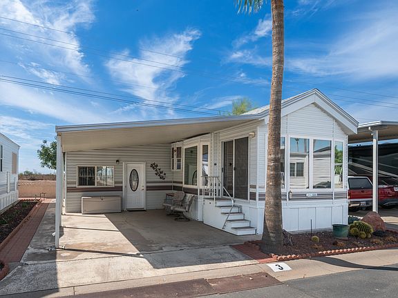 FULLY FURNISHED home on an EXTERIOR LOT in GOLDEN VISTA backs directly to STATE TRUST LAND for PRIVACY and NO NEIGHBORS BEHIND. Recent updates include FRESH PAINT, UPDATED DOUBLE-PANE WINDOWS, and a NEW SLIDING GLASS DOOR. The UPDATED KITCHEN features MODERN COUNTERTOPS and a STAINLESS STEEL CERAMIC GLASS-TOP STOVE. The SPACIOUS ARIZONA ROOM offers flexibility as a SECOND LIVING AREA, GUEST SPACE, or HOBBY ROOM, and includes a CONVENIENT LAUNDRY AREA. The BATHROOM has been updated with an IDEAL WALK-IN SHOWER, while the EXTENDED BACK PATIO is perfect for relaxing and enjoying GORGEOUS ARIZONA SUNSETS along with your own MATURE LEMON TREE providing FRESH FRUIT at your fingertips. MOVE-IN READY with EVERYTHING YOU NEED to immediately start enjoying the IDEAL ARIZONA LIFESTYLE. All this in the INCREDIBLE GOLDEN VISTA RV RESORT, an ACTIVE ADULT COMMUNITY where YOU OWN YOUR LAND, complete with an ONSITE ACTIVITY DIRECTOR, CLUBS, HOBBY ROOMS, SPORTS ACTIVITIES, and endless opportunities for FUN and FRIENDSHIP, MORE THAN JUST A DESTINATION, IT'S A LIFESTYLE!