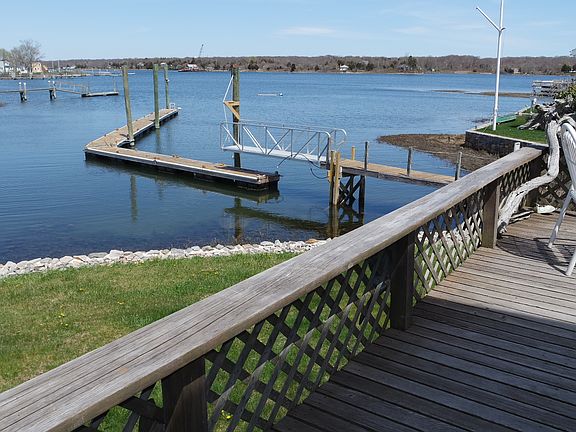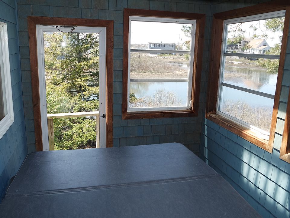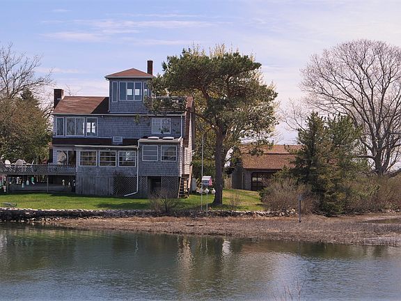 Enjoy life on the water with this gem of a shingled contemporary on Great Island. Lots of unique extras await you like a third level cupola and a four seasons sunroom.The house is located on a private peninsula overlooking the Great Salt Pond with spectacular water views to quiet your soul and nourish your spirit. There is an extra long dock which is shared with one neighbor. The land comprises three-quarters of an acre with plenty of parking for summer guests. There is a rare freestanding four car garage in the rear where you can store your boat in the off season.The kitchen has been recently updated with all new appliances. Flood insurance is required if you use a mortgage to purchase. Current price ranges from $4,000 to $5,000 per year.