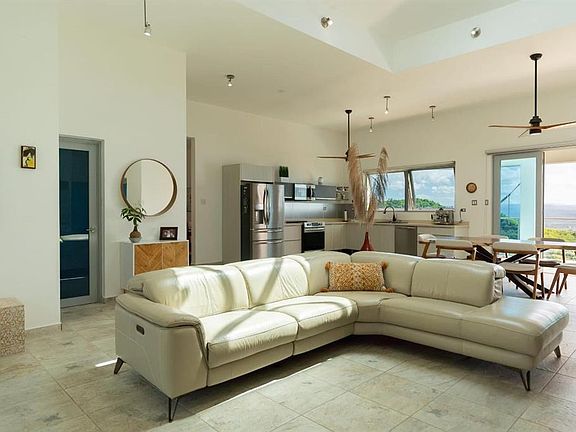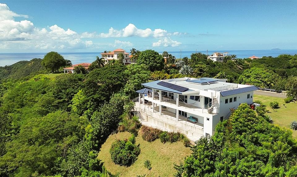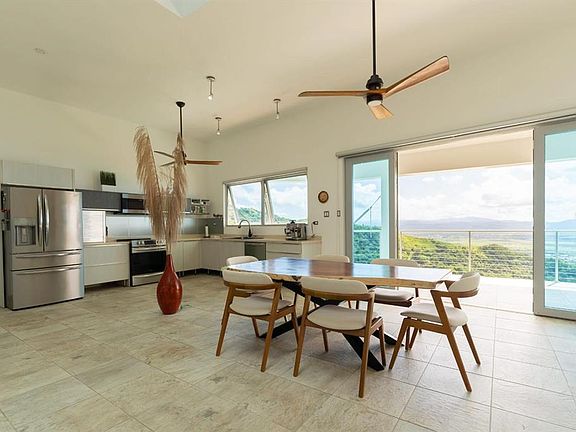 Experience the best of Coastal and mountains side living in this beautiful two-story home nestled in the gated community of Palatine Hills. Located atop the lush hills of Rincón, this property offers breathtaking panoramic views of the ocean and mountains from almost every room. The Main Level features spacious open living area filled with natural light, a living room and a kitchen that opens up to a spectacular balcony- perfect for relaxing or entertaining while enjoying the breeze. Upstairs you’ll find three bedrooms two bathroom and a half an office space. The lower level includes an additional bedroom, bathroom and kitchen, ideal for guests, extended family, or potential rental income. This property also offers a solar water heater, ample garage, and controlled access for residents within a fully gated community. The monthly maintenance fee conveniently includes water service. Whatever you are looking for a primary residence or second home, it offers the privacy, tranquility, and unmatched views that make Rincón so special.