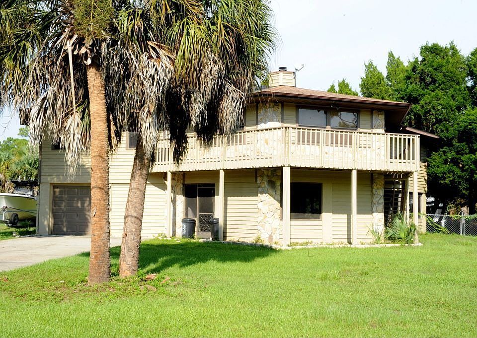 Waterfront home with direct Gulf of Mexico access, DEEP WATER and NO BRIDGES. New Roof in 2006. Split bedroom plan with wood burning fireplace in living room and inside laundry. Front deck with great views of salt water marsh and back deck with views of shady back yard and waterfront. This home offers a large screened area with one car garage and workshop. Hiking and biking trails across the street.