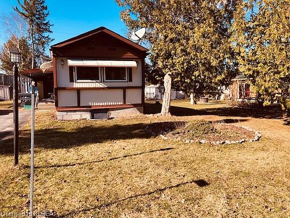 Looking for affordable living? This bungalow style 14' wide mobile home on concrete block foundation with a covered deck, 2 bedrooms, 4pc bath and kitchen/living room may be what you're looking for! Situated in a clean and friendly private park-like setting this home features a newer roof, new footings, access front door and hot water on demand. Bell Fibe available. Pet friendly!