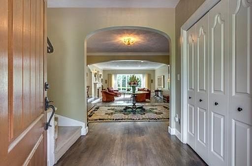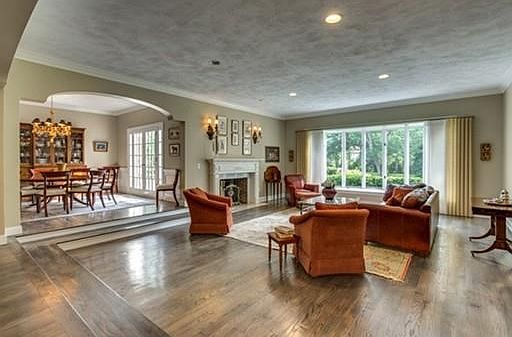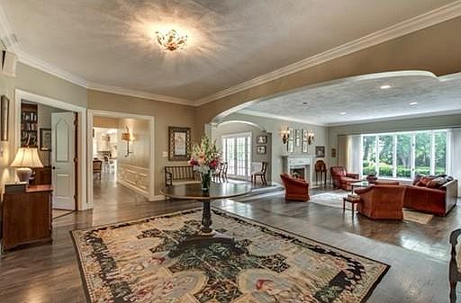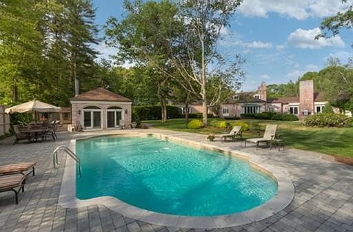 A cobblestone driveway leads to this distinguished French style country home on two park like acres of manicured lawns, and plantings. In addition to the main residence, this magnificent setting also showcases a charming carriage/pool house with a spacious family room, kitchen, bedroom and full bath, adjacent to the heated inground pool, and an outdoor kitchen area for grilling. There is a also a 3 stall barn available on the property. The main residence has a wonderful foyer which opens to a spacious step down living room filled with natural light and views of the pool area. An updated gourmet kitchen with dining area, incorporates the family room with fireplace, wet bar and coffered ceiling, along with French doors opening to the enormous patio. Mahogany library with custom cabinets and fireplace, gracious dining room with French doors leading to patio, and five bedrooms all contribute to fine formal entertaining and family living spaces. Walking distance to school campus.