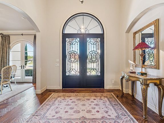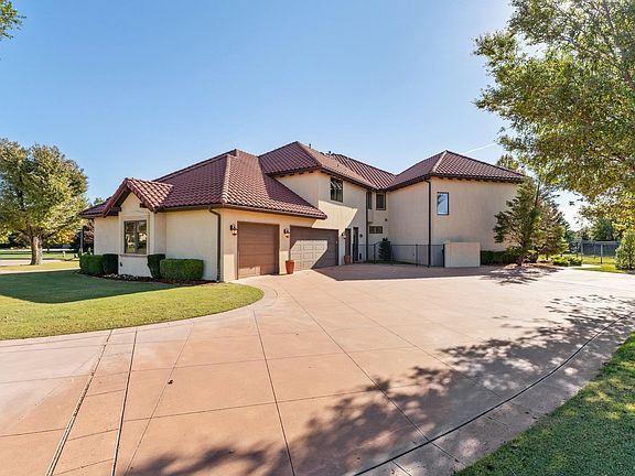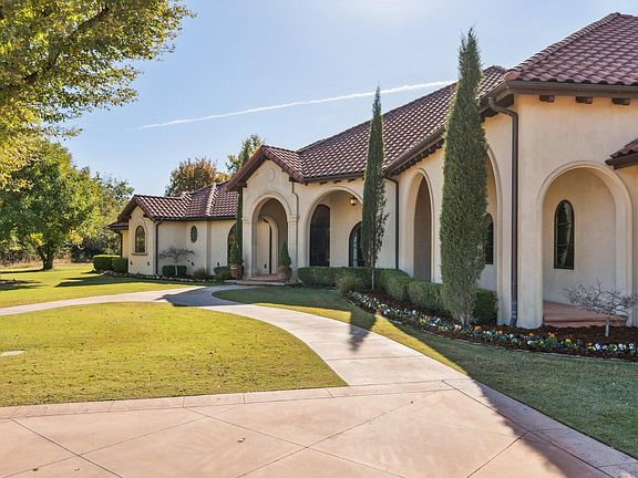 A RARE OPPORTUNITY to own a custom designed home with impeccable quality and craftsmanship and positioned perfectly on 2 lush acres in the gated community of El Paseo, Enid, Ok. From the prestige location to the timeless architecture this property spans 5,830 sq ft of interior space. As you enter through the wrought iron front doors you will be in awe of the beautiful hand scraped wood floors that are in the two living areas, office, kitchen, dining and hallways. The culinary kitchen is a chef's delight with a center island, gas range with pot filler, vented hood, built in refrigerator and dishwasher with paneled front to match cabinets. There are 3 ovens, a warming drawer plus a built in microwave and a walk in pantry. Adjoining the formal living area is a wet bar area for entertaining with a dishwasher, ice maker and wine cooler. The formal living area has a stone fireplace flanked by two windows on each side. The casual living area is off of the entry and both have soaring ceilings of up to 14' with triple crown moldings. The formal dining is large enough for entertaining those many friends and family and the butler's pantry is a convenient space to serve from. The office area is a rustic beauty with many built in book shelves, beamed ceilings, double custom doors and large window with plantation shutters. The primary en-suite is awesome, beautiful and spacious, the primary bedroom is large and has a sliding glass door that opens to the covered patio, the closet space is incredible with 3 tiered closet rods and the top rod pulls down for your convenience. There are built in dual his and her dressers. Continuing on to the safe room which serves as an additional closet area as well as a storm safe room. As you enter the impressive spa like bath, you will be amazed with the soaking tub, walk in shower and large dual vanities. There is also another guest bedroom and full bath on the 1st floor. The utility room has lots of cabinets, sink and folding space and there is a walk-out door and a doggie door to a small fenced in area for your furry friends. Central stairs lead up to two more guest bedrooms with full baths and walk in closets. There are two living areas up and both are flex rooms which could be an exercise room, game room or media room. There is a 2nd stairway from upstairs down to the garage area as well. The garage is an over-sized 3 car garage with coated floors and built in cabinets. The 550 sq ft. arched covered patio has a built in stone fireplace and outdoor kitchen for those casual entertaining evenings. INTERIOR FEATURES: Surround Sound with in-wall controls for each room. Plantation Shutters, Solid Wood Doors, High End Windows and Doors, Quartzite Countertops, Granite Countertops, Arched Doorways and Windows, 3 HVAC Units, 3 HWH. Security System. EXTERIOR FEATURES: 2 Acres, Clay Tile Roof, Full Gutters which drain underground, Water Well for outside, Sprinkler System, French Drains in one area in back yard, Stained Concrete, Exterior up Lighting. Wrought Iron Fencing. Christmas lights for roof transfer to buyer. This home was Custom Designed by Sam Grisham, Architect, OKC and Custom Built by Tim Hughes, Luxury Home Builder. OKC *** It is hard to even imagine a nicer place to begin and end each day!!!