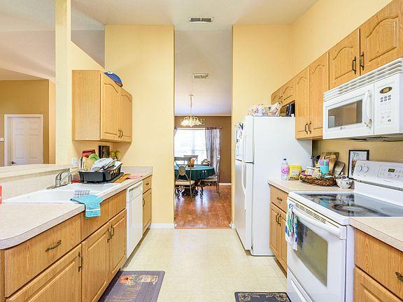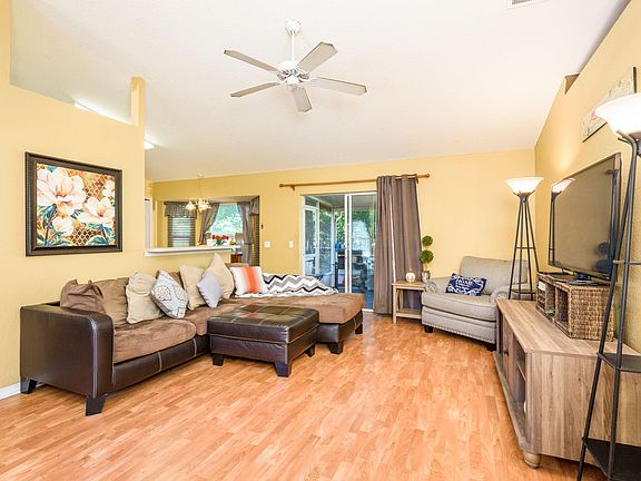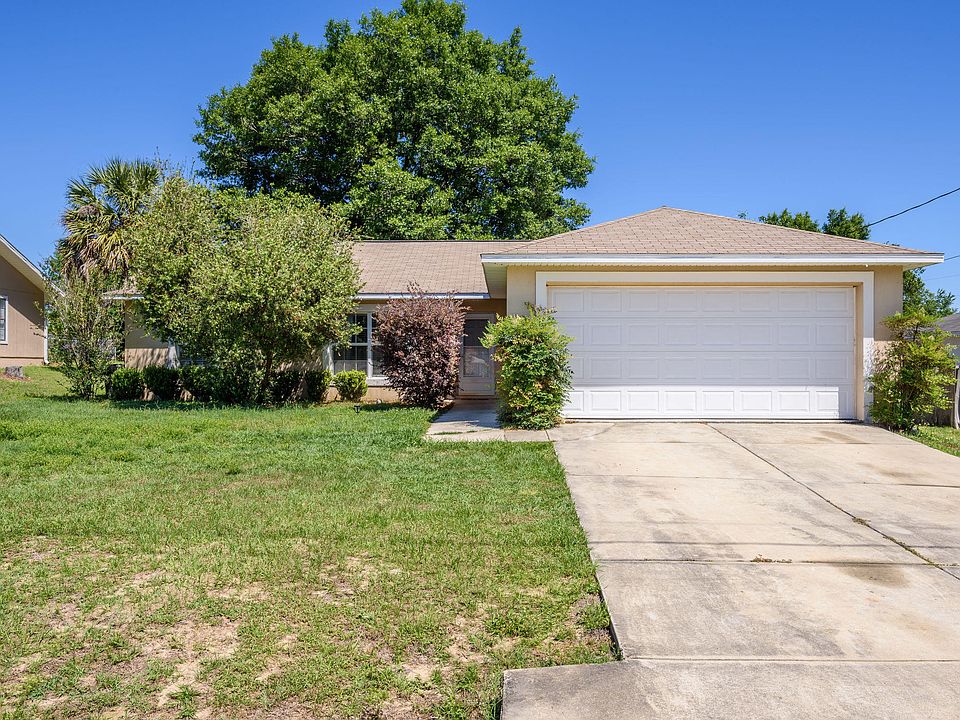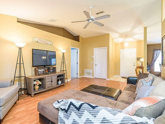 Located at the western edge of Silver Springs Shores, this property is only a short drive from Ocala and just a few minutes' walk to the Florida Trail on the Cross Florida Greenway. This property is also quiet thanks to it being located on a dead-end road with minimal traffic. Built in 2006, the home offers either the first-time home buyer or an investor a perfect opportunity. Featuring a split bedroom floorplan for the home's 3 bedrooms, the open floorplan and vaulted ceilings give a sense of space to the home's 1,429 living sq.ft. Laminate floors in the living and dining rooms is a nice upgrade to these areas. A large shade tree behind the home makes time on the screened patio and backyard enjoyable, even on summer days.