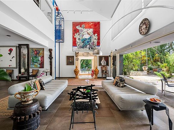 Welcome to this stunning architectural jewel in Garden Hills, a unique masterpiece designed by a renowned architect showcasing a harmonious blend of urban elegance and modern functionality, offering an unparalleled retreat just moments from the city and a few steps to the Caparra Country Club. Situated in a very private dead end street of Garden Hills Norte in a gated community, this is one of THE most exclusive coveted neighborhoods in Guaynabo and the San Juan metro area. This thoughtfully designed home features an open-concept floor plan perfectly integrating the ample dining area to the majestic Great Room with its soaring double height cathedral ceilings, all seamlessly flowing to the 3 terraces surrounding it in every corner. The perfect flow between the indoor and outdoor living areas connects all three terraces to the 2 tranquil koi ponds and the striking infinity pool in the center, providing a peaceful and serene oasis, yet also ideal for hosting and entertaining large gatherings. The home also boasts 3 bedrooms all with baths and a fourth bonus, or caretaker’s bedroom also with a bath, a family room, a powder room and an office with a separate entrance overlooking the scenic gardens. The master bedroom has its own private terrace with an outdoor pool/spa also overlooking the lush beautiful gardens. The chef’s kitchen combines sleek finishes with functionality and opens to another terrace and small pond, making it ideal for intimate gatherings. The office features custom built-ins and faces another terrace with an oriental style pond filled with water lilies, adding a unique peaceful and inspiring work area to the room. All is complemented with more luxurious details such as abundant natural light, fresco paintings, a 1000 bottle wine cellar, stone floors, an elevator, stained glass windows, 2 car garage, a generator and a cistern. This contemporary sanctuary is only 12 minutes from San Juan and right next to some of the best schools, great restaurants, superb shopping venues and excellent sport facilities, combining suburban and city living at its best. Also available for RENT.