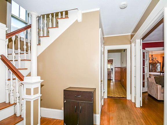 New England four square colonial with original charm!!! This lovely home features high ceilings and a built in hutch,hardwood floors and spacious generous sized rooms. Large enclosed front porch and a sunroom off the back of the house and a walk up attic for your future expansion . Real nice flat yard and spacious driveway with a 2 car detached garage.A must see to appreciate!!!
