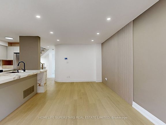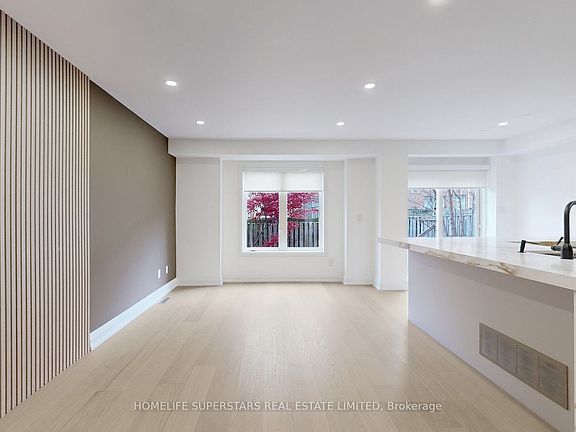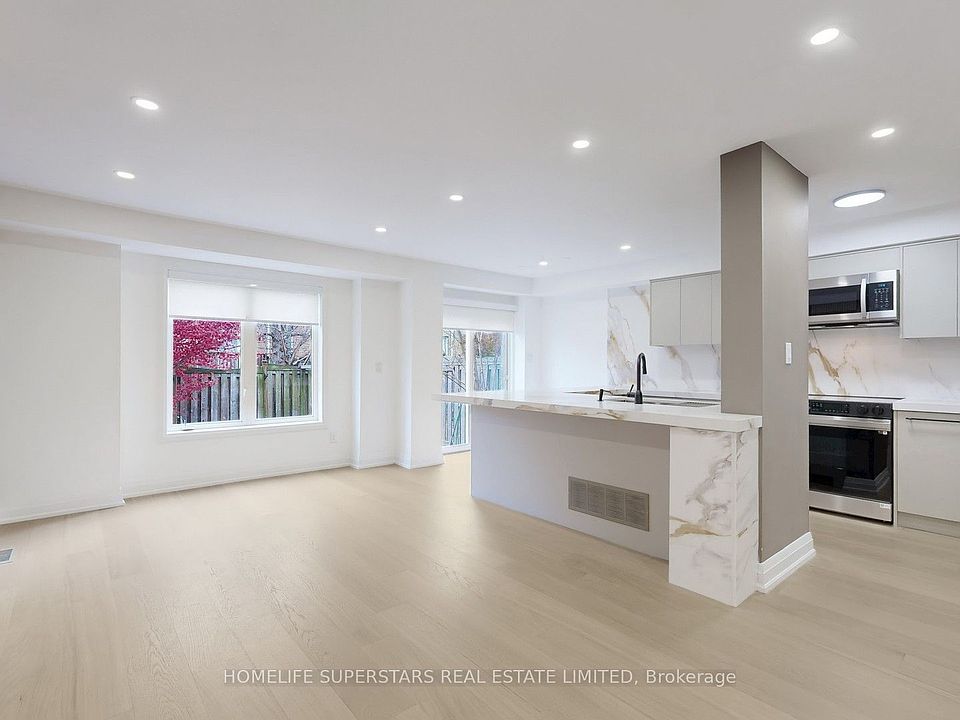 Welcome to 3 Playfair Rd! The main floor welcomes you with an elegantly tiled sunken foyer and powder room, flowing into a spacious open-concept kitchen, living, and dining area. Entertain with ease at the oversized island (seating 6-8), featuring premium quartz counters, a custom stone column, and a full suite of new appliances-including a fridge with water and ice maker.Upstairs, discover three bright bedrooms including a secondary bedroom with semi-ensuite, and a convenient upper laundry closet for daily efficiency. The impressive primary suite offers a walk-in closet, private beverage bar, and spa-inspired ensuite with a freestanding soaker tub and standup shower.The finished basement delivers further versatility with an additional bedroom and ensuite, generous living area, and dedicated storage. Throughout the home, enjoy cohesive upgraded finishes, custom cabinetry, elegant stonework, and refined black hardware accents.