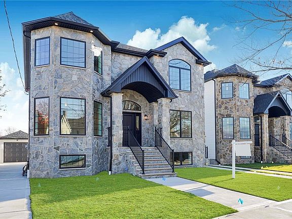 Discover the epitome of luxury living in this stunning new construction center hall colonial, meticulously crafted by one of Staten Island's premier developers. Situated on an oversized lot along a wide, tree-lined street, this home offers unparalleled comfort, style, and convenience. Upon entry you are welcomed into a dramatic two-story foyer featuring a grand staircase that sets the tone for this exquisite home. The fully open-concept layout includes a formal living room, formal dining room, family room with gas fireplace, and a modern kitchen with a dinette, oversized food pantry, wet bar, and wine refrigerator. The main floor features radiantly heated porcelain tile complemented by soaring 9-foot ceilings, adorned with recessed lighting as well as oversized 6-foot tall casement windows that fill the space with natural light. The second floor offers 9-foot ceilings and stunning hardwood floors throughout. The master suite, with its French door entry, boasts a luxurious en suite bath and an oversized closet. Three additional oversized bedrooms, a full 3/4 bath, and a dedicated laundry room provide ease of use and convenience. The basement is designed for versatility, featuring a fully tiled, large open-concept space with its own private entrance and 3/4 bath. The durable and stylish tile flooring makes it both functional and inviting. Additionally, a separate side apartment includes an oversized bedroom, its own private entrance, and independent path access, offering excellent potential for rental income. The home's stately stone façade accented by recessed lighting create stunning curb appeal, while the one-car garage and wide street offer the ultimate practicality. Enjoy the convenience of living close to the Staten Island Railway and Hylan Boulevard corridor, providing easy access to transportation, shopping, and dining.