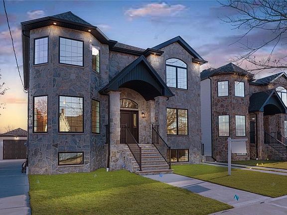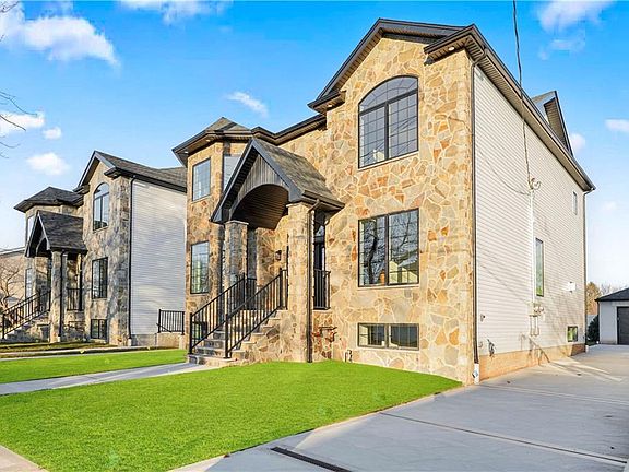 Discover the epitome of luxury living in this stunning new construction center hall colonial, meticulously crafted by one of Staten Island's premier developers. Situated on an oversized lot along a wide, tree-lined street, this home offers unparalleled comfort, style, and convenience. Upon entry you are welcomed into a dramatic two-story foyer featuring a grand staircase that sets the tone for this exquisite home. The fully open-concept layout includes a formal living room, formal dining room, family room with gas fireplace, and a modern kitchen with a dinette, oversized food pantry, wet bar, and wine refrigerator. The main floor features radiantly heated porcelain tile complemented by soaring 9-foot ceilings, adorned with recessed lighting as well as oversized 6-foot tall casement windows that fill the space with natural light. The second floor offers 9-foot ceilings and stunning hardwood floors throughout. The master suite, with its French door entry, boasts a luxurious en suite bath and an oversized closet. Three additional oversized bedrooms, a full 3/4 bath, and a dedicated laundry room provide ease of use and convenience. The basement is designed for versatility, featuring a fully tiled, large open-concept space with its own private entrance and 3/4 bath. The durable and stylish tile flooring makes it both functional and inviting. Additionally, a separate side apartment includes an oversized bedroom, its own private entrance, and independent path access, offering excellent potential for rental income. The home's stately stone façade accented by recessed lighting create stunning curb appeal, while the one-car garage and wide street offer the ultimate practicality. Enjoy the convenience of living close to the Staten Island Railway and Hylan Boulevard corridor, providing easy access to transportation, shopping, and dining.